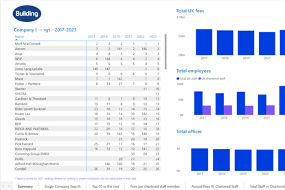 Full sortable data from Building’s ranking of the top 150 contractors and housebuilders in the UK
